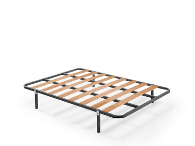 El somier cuenta con una estructura altamente resistente fabricada con tubo de acero de 40×30 con tratamiento anticorrosión y antióxido. Sus láminas (multilaminares) son de madera maciza resistente de 180mm, van embutidas e insertadas en el tubo a través de un taco basculante antiruido de PVC que garantiza la adaptación de cualquier colchón al somier.
