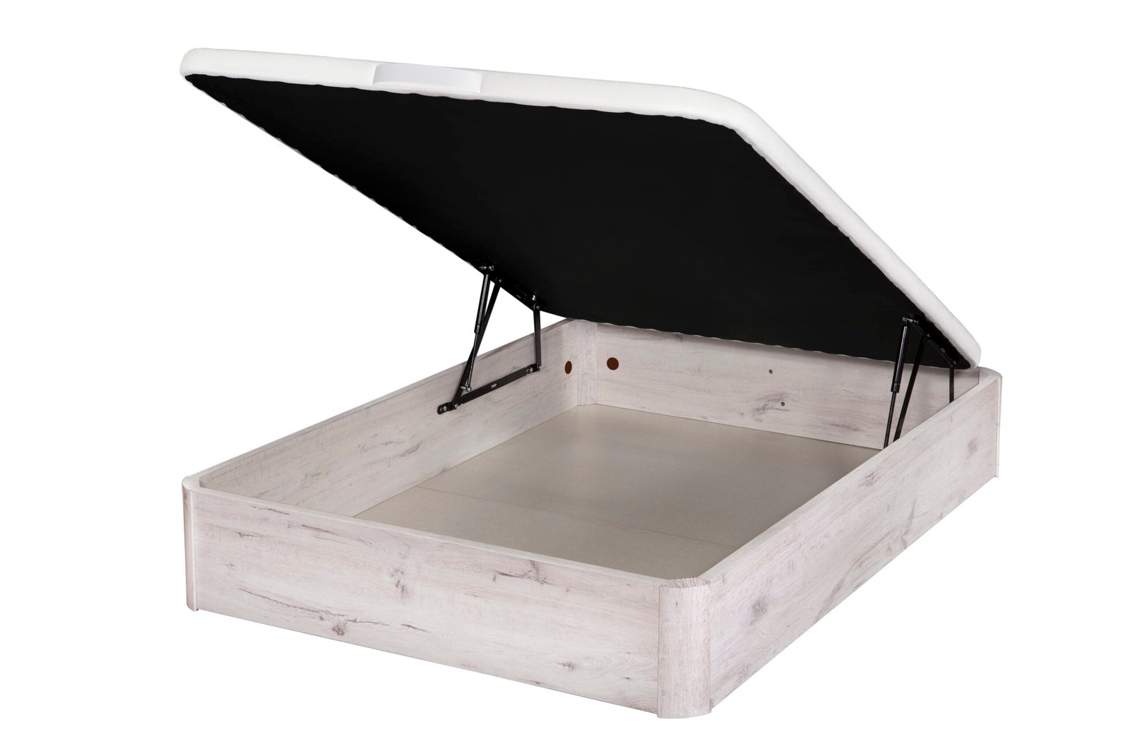 Estructura de cama que incluye una base tapizada en tejido 3D transpirable con posibilidad de levantarla para acceder a un espacio de almacenamiento debajo. Aprovecha al máximo el espacio disponible del canapé, una solución práctica para guardar ropa de cama, ropa fuera de temporada, zapatos y otros objetos que de otro modo ocuparían espacio en los armarios y cajones. Dispone de hueco útil de 27cm y altura total de 35cm para mantener el orden del hogar y proteger los artículos de descanso.