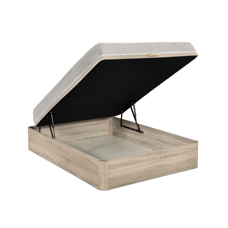 Canapé abatible de madera de gran capacidad con hueco útil de 27cm y altura total de 35cm para mantener el orden del hogar y proteger los artículos de descanso. Estructura de madera con tablero de 30mm de grosor y esquinas de madera redondeadas.